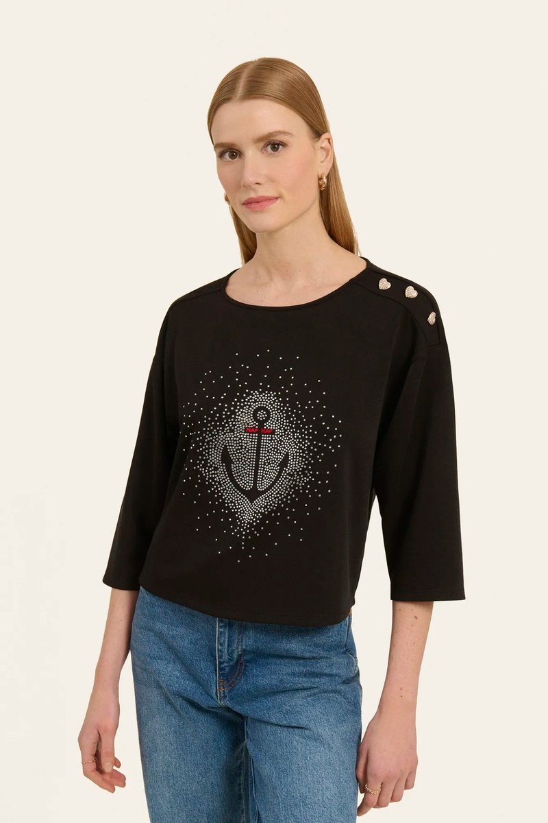 Logo, motif ancre et strass devant.