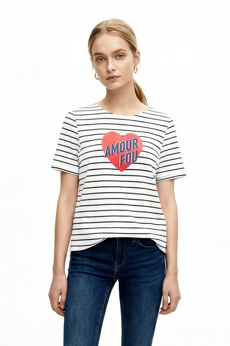 T-shirt - Ecru et bleu marine