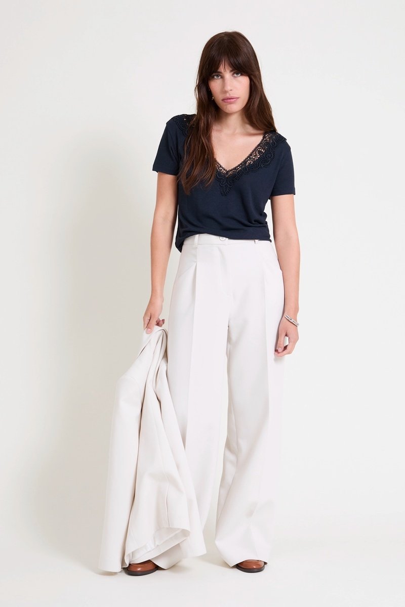 Col en V avec guipure.