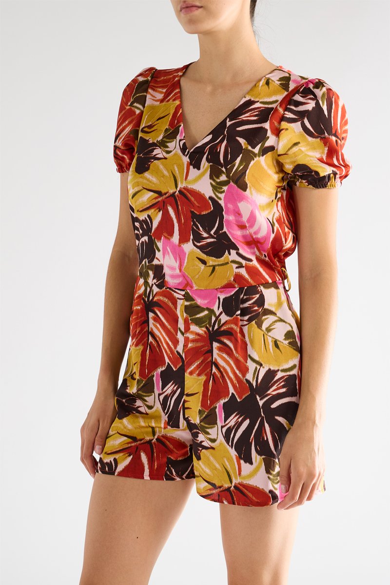 Combishort à manches courtes élastiques.