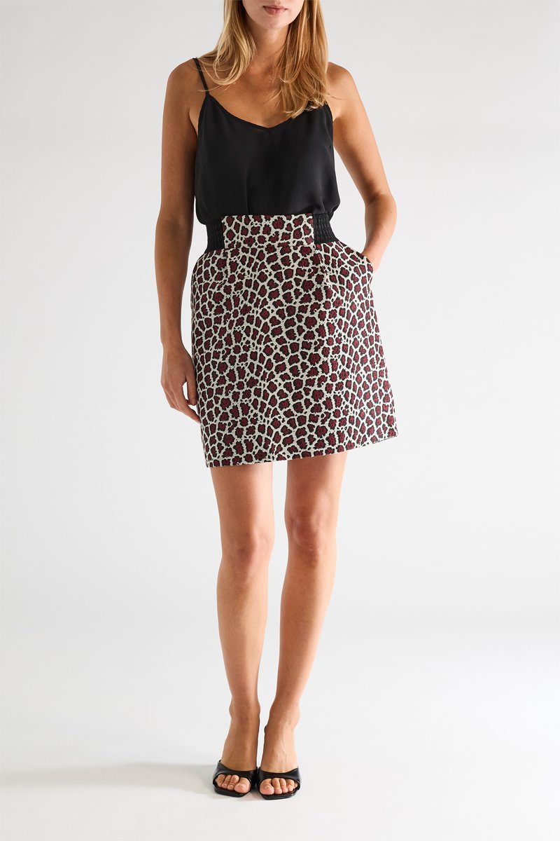Minijupe taille haute - Rouge et écru