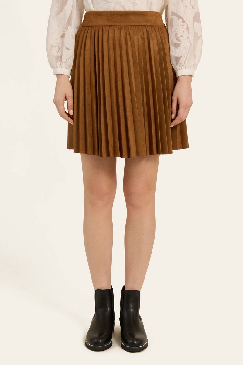 Jupe plissée en velours - Marron