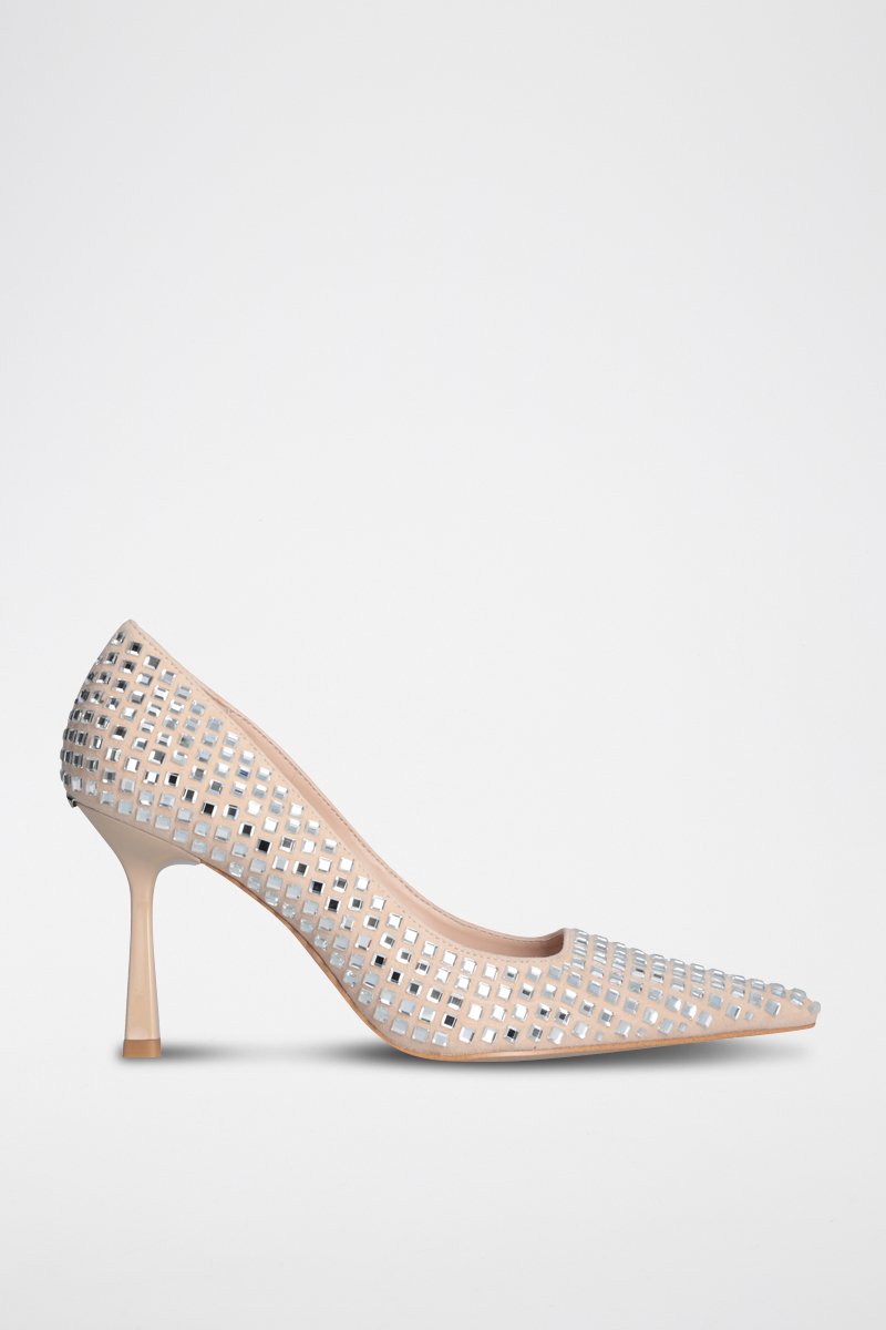 Escarpins en cuir de chèvre à strass.