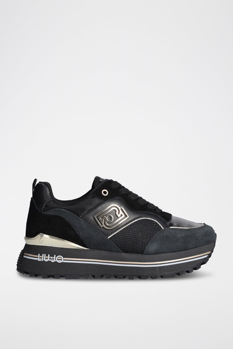 Baskets plateformes en cuir de taureau Maxi Wonder - Noir