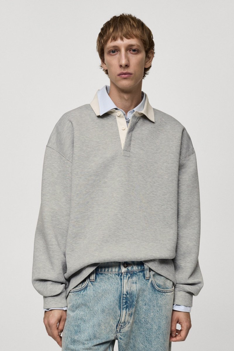 Sweat-shirt polo relaxed-fit - Gris chiné