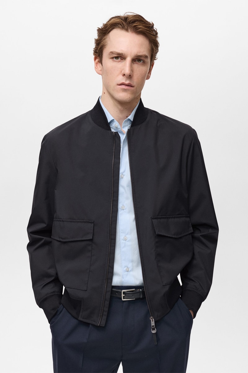 Blouson bomber résistant à l'eau poches - Bleu nuit