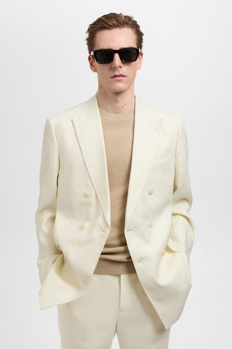 Veste costume croisée Amalfi 100 % lin slim-fit - Ivoire