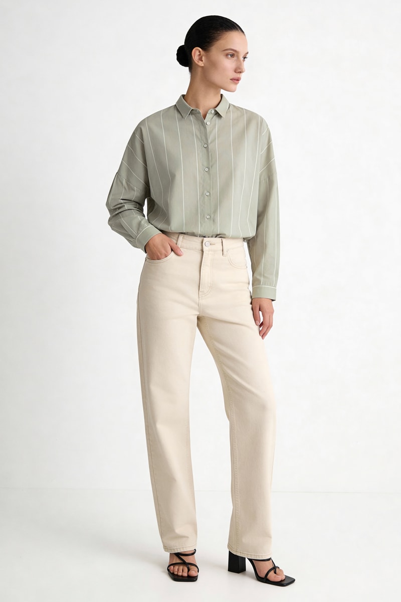 Chemisier oversize Claudy - Vert clair et écru