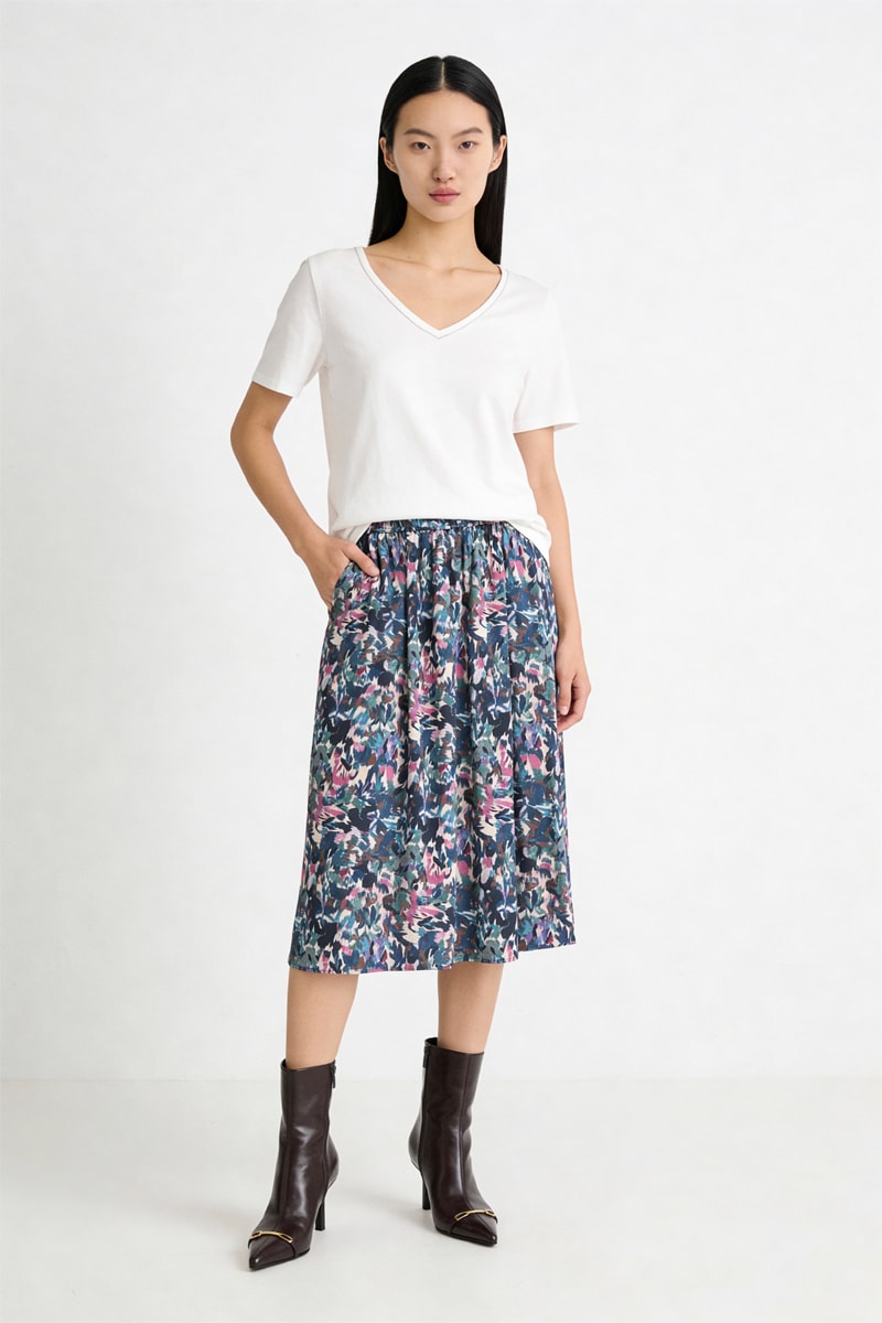 Jupe midi taille haute Jolina - Kaki et bleu marine