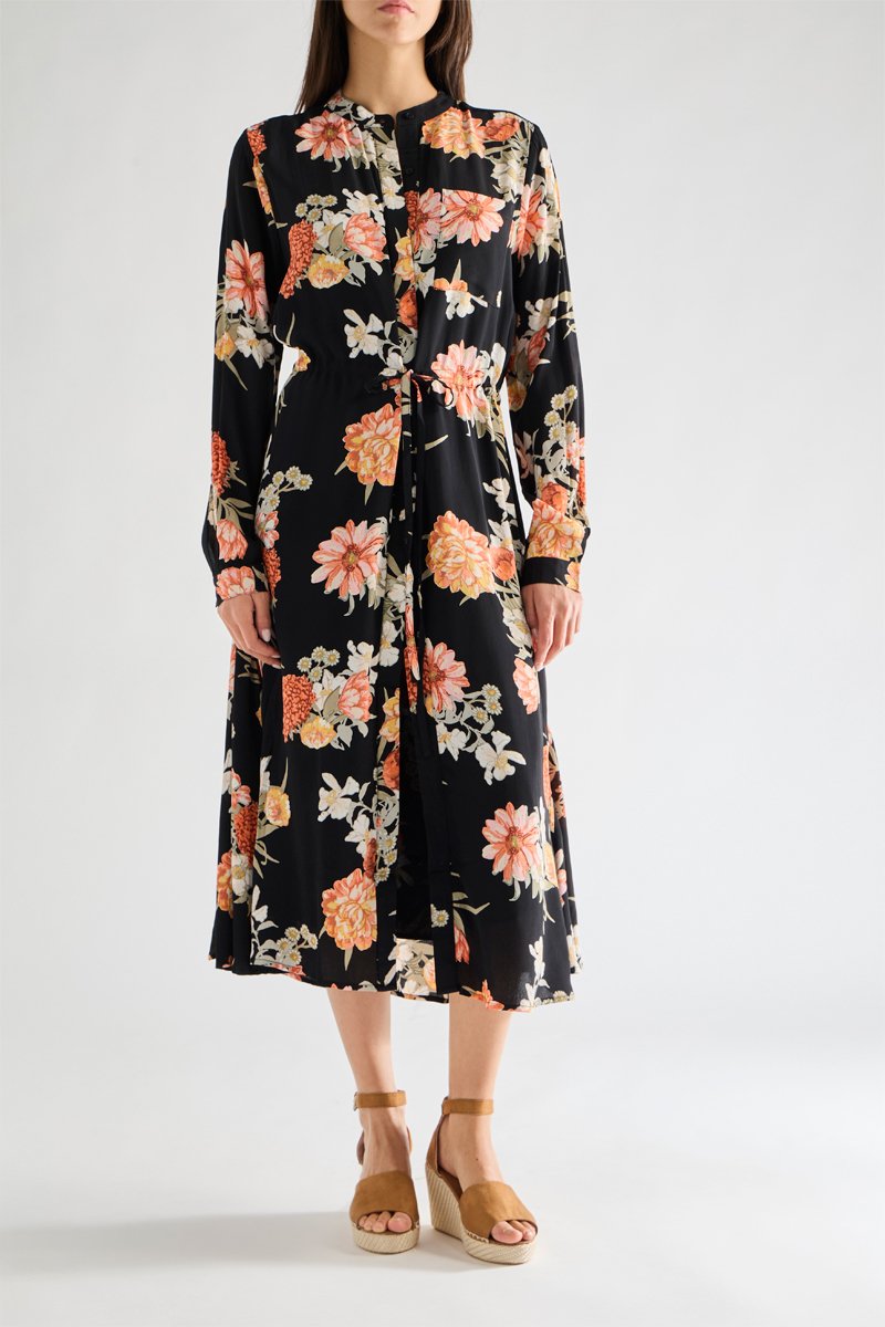 Robe chemise Floral - Noir