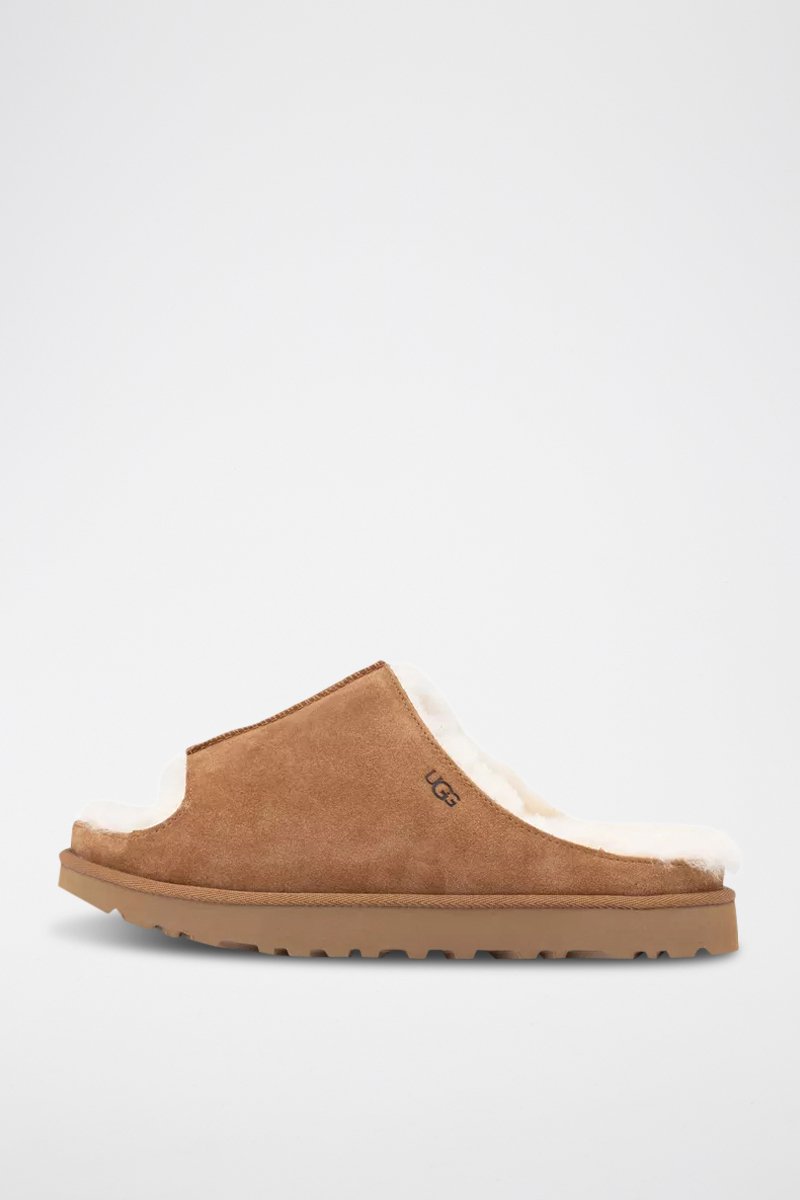 Mules fourrées en nubuck.