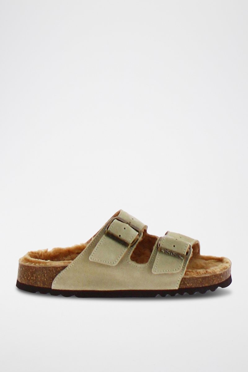 Mules fourrées en nubuck.