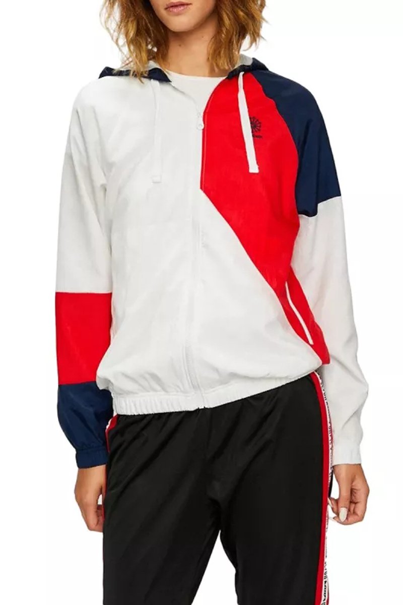 Coupe-vent à capuche AC - Blanc et bleu marine