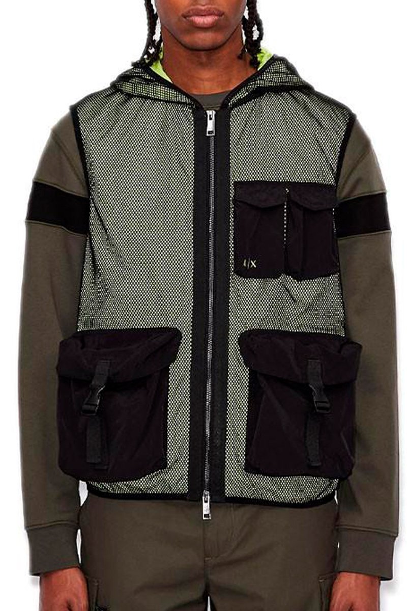 Sweat à capuche Exhange - Kaki et jaune fluo