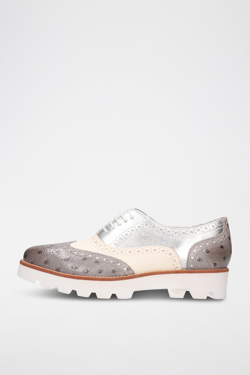 Richelieus en cuir et cuir d’autruche.