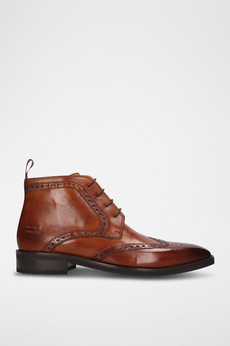 Melvin & Hamilton revendique un savoir-faire anglais dont les semelles cousues et le cuir de qualité sont les atouts majeurs. Minutieusement choisis, les cuirs Melvin & Hamilton sont entièrement teints à la main suivant un procédé spécifique qui a nécessité des années de recherche. Un aspect authentique qui fait de Melvin & Hamilton une marque incontournable.