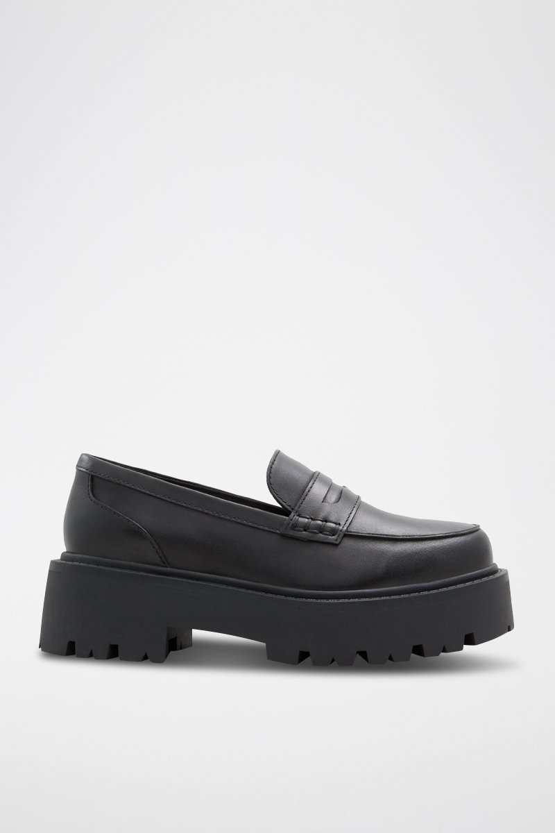 Mocassins à talons en cuir.