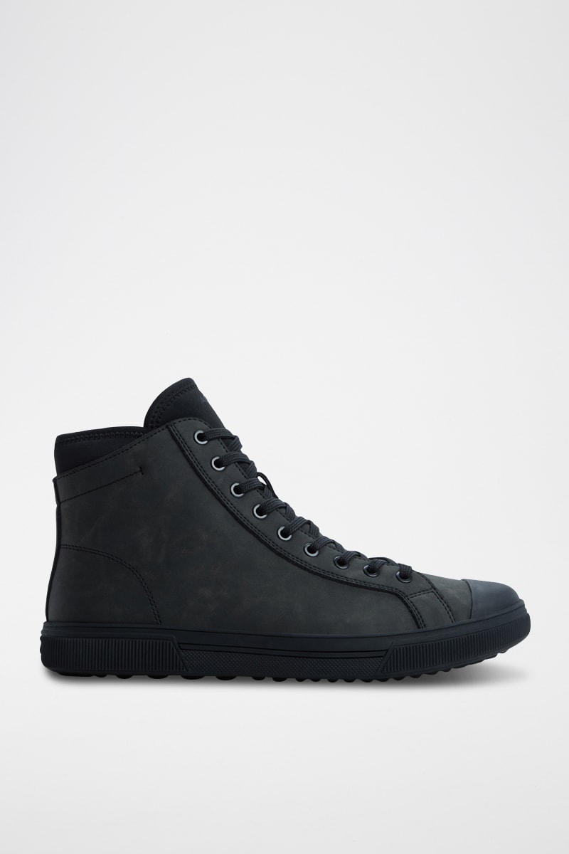Fermeture à lacets et zippée sur le côté.