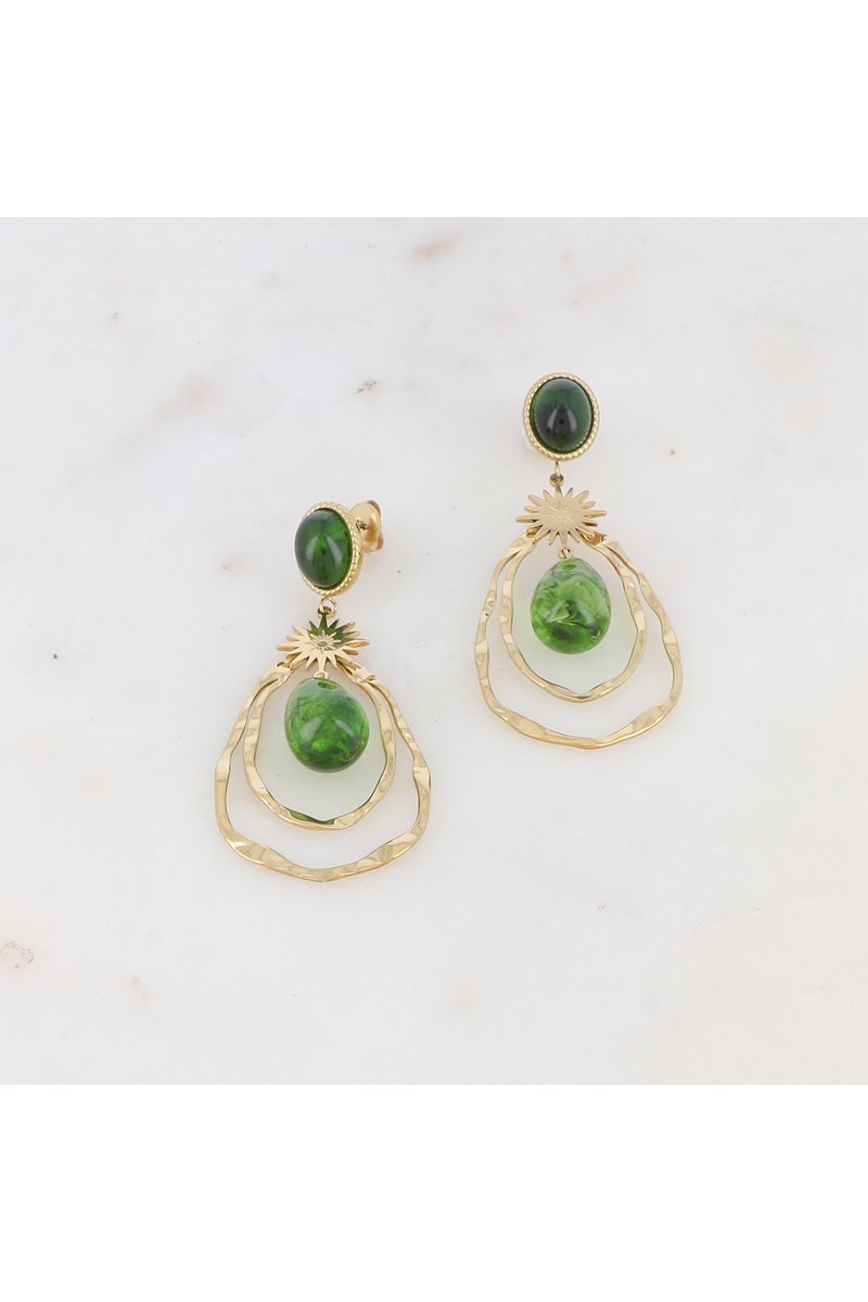 Boucles d'oreilles - Doré et vert foncé