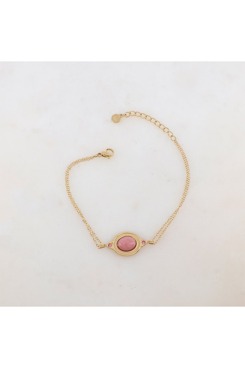 Gourmette sertie d’une rhodonite et de cristaux.