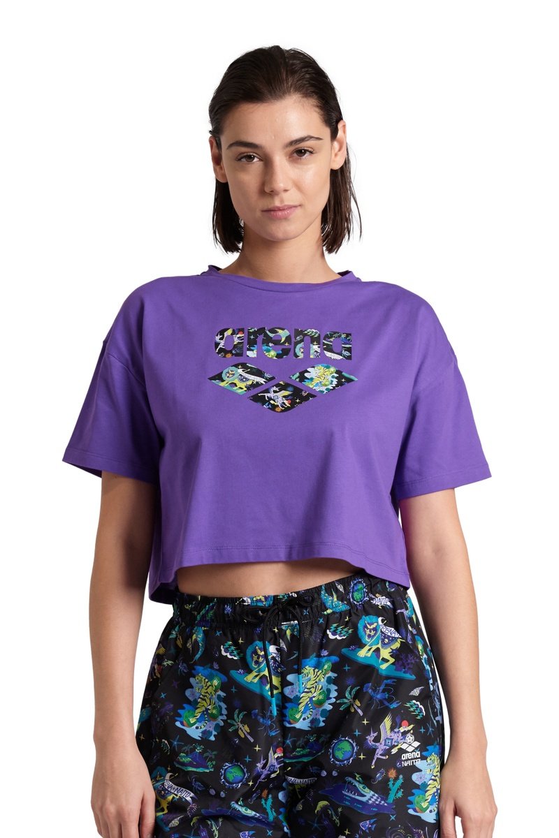T-shirt cropped Fun Planet - Violet