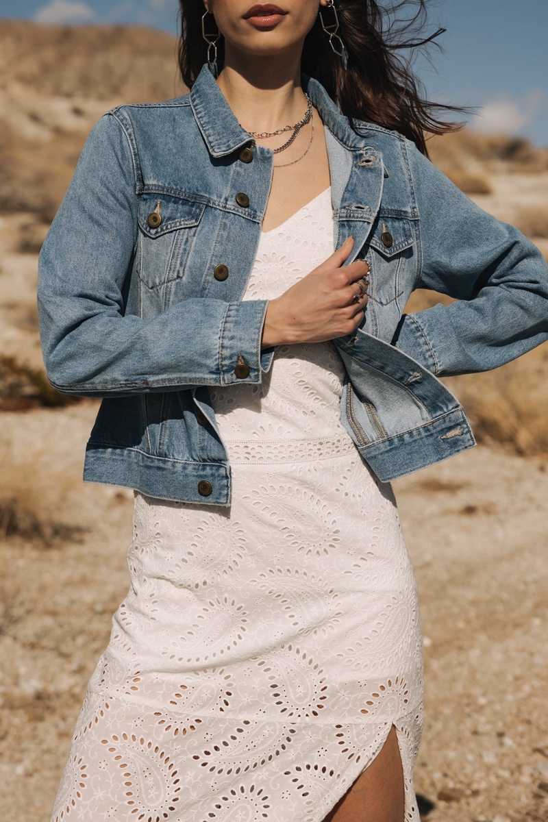 Veste en jean à manches longues boutonnées.