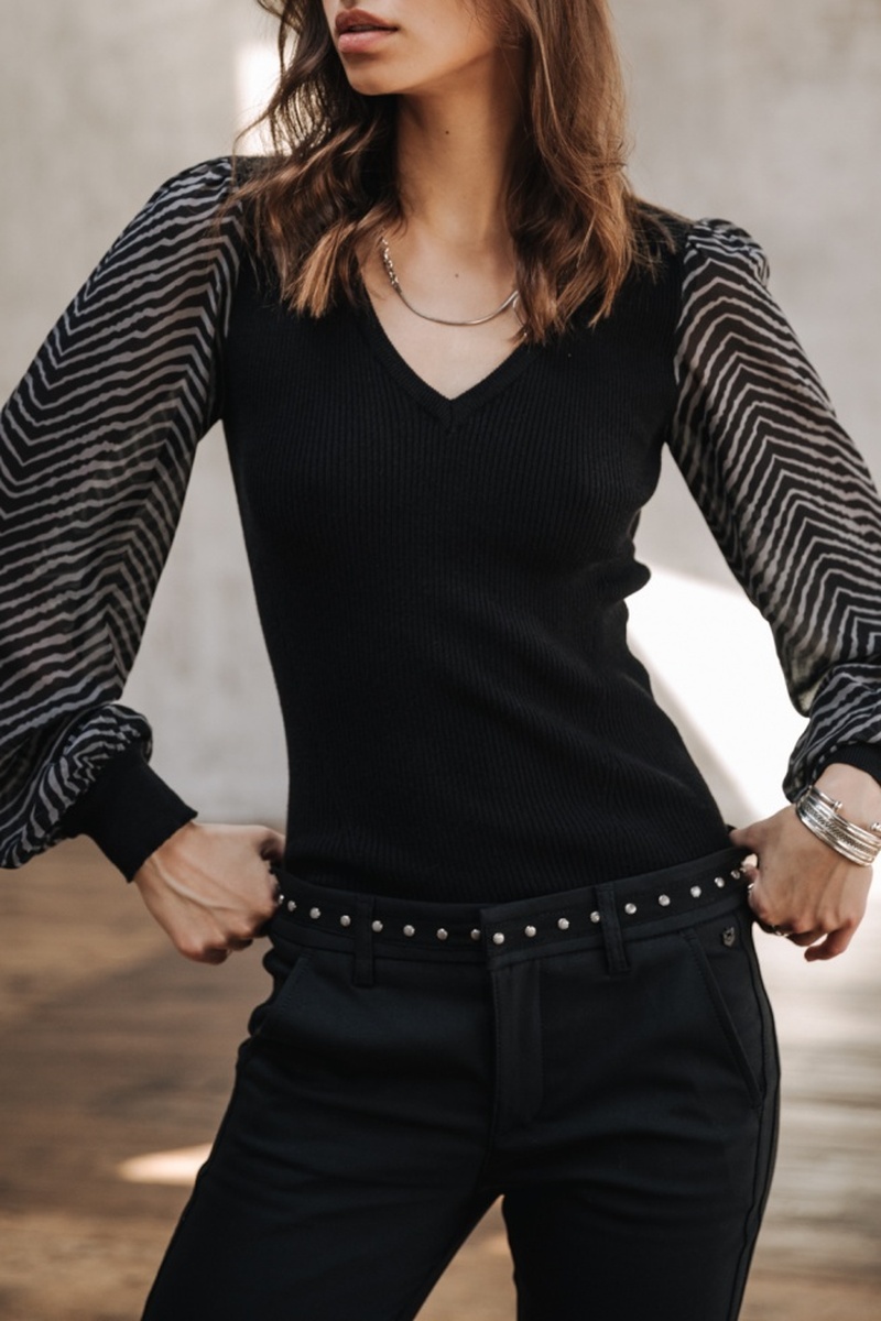 Pull bi-matière à manches longues.