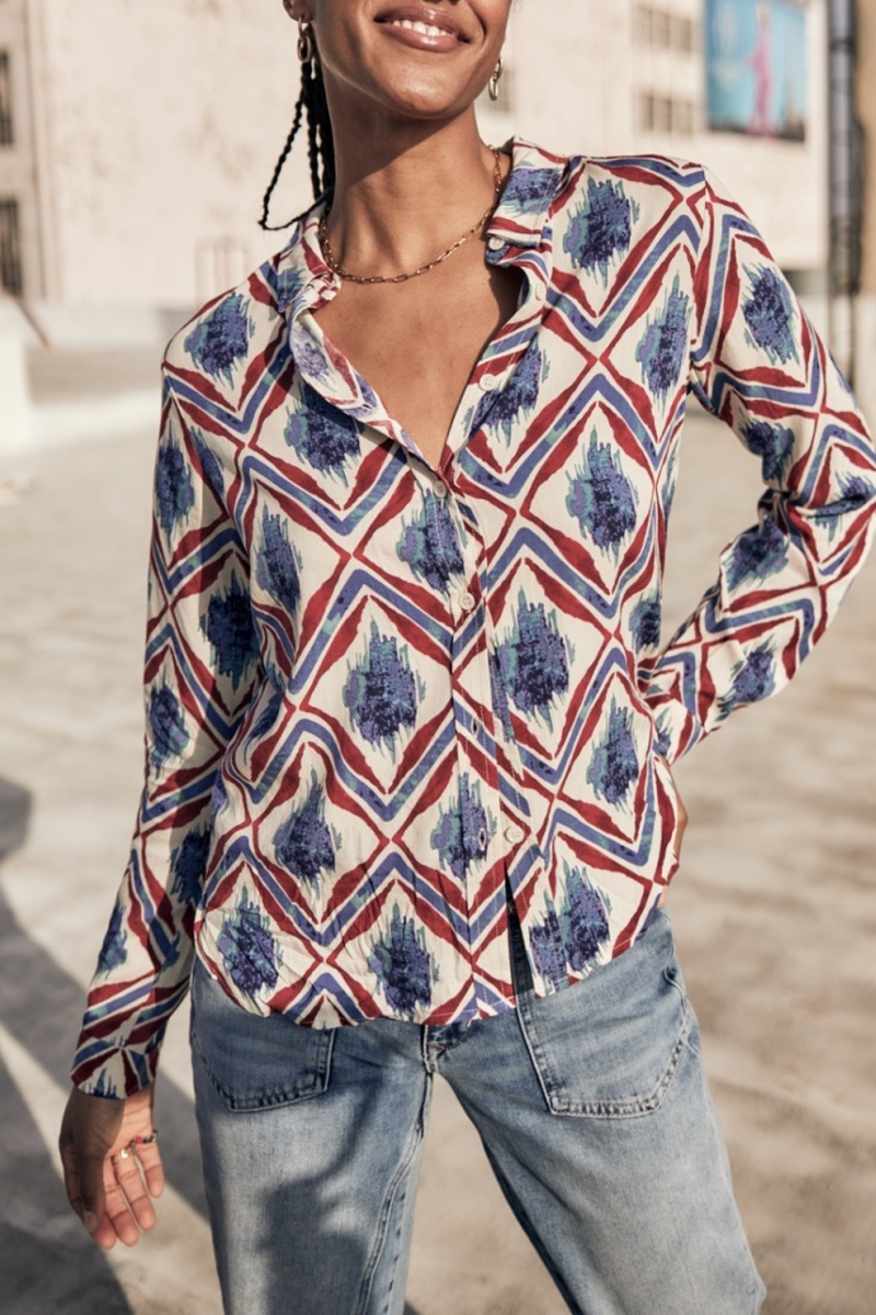 Chemisier dt à pans arrondis.