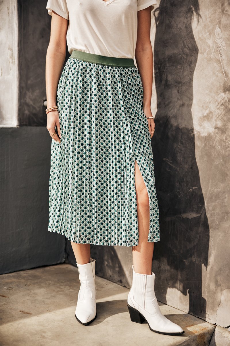 Jupe plissée Jaya Flow - Blanc, noir et vert