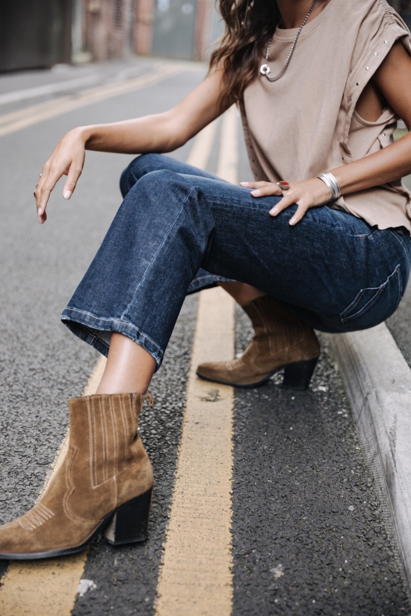 Coupe bootcut, longueur 7/8.