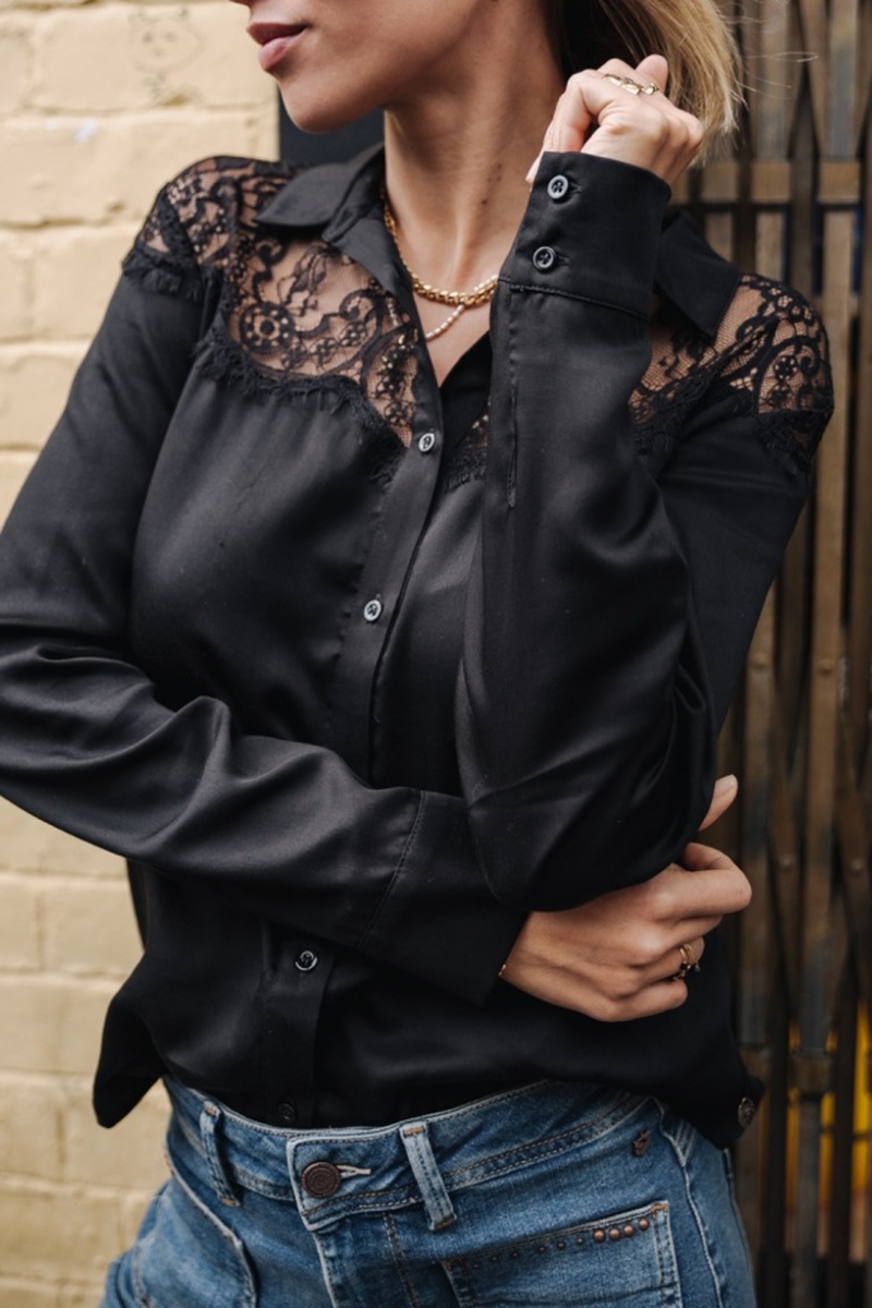 Chemisier manches longues bi-matière en lyocell et dentelle.