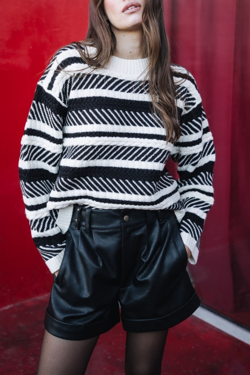 Pull en laine câble à manches longues dans une maille bicolore douce et chaleureuse.