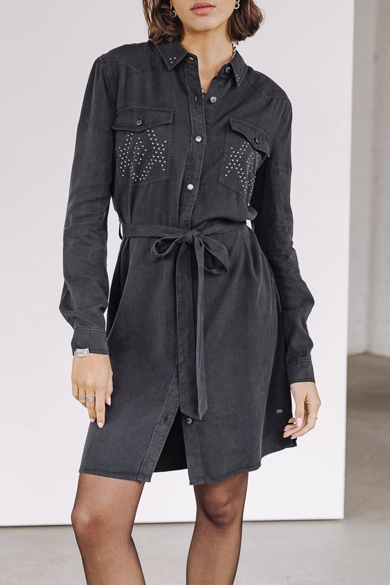 Robe chemise à manches longues boutonnées.
