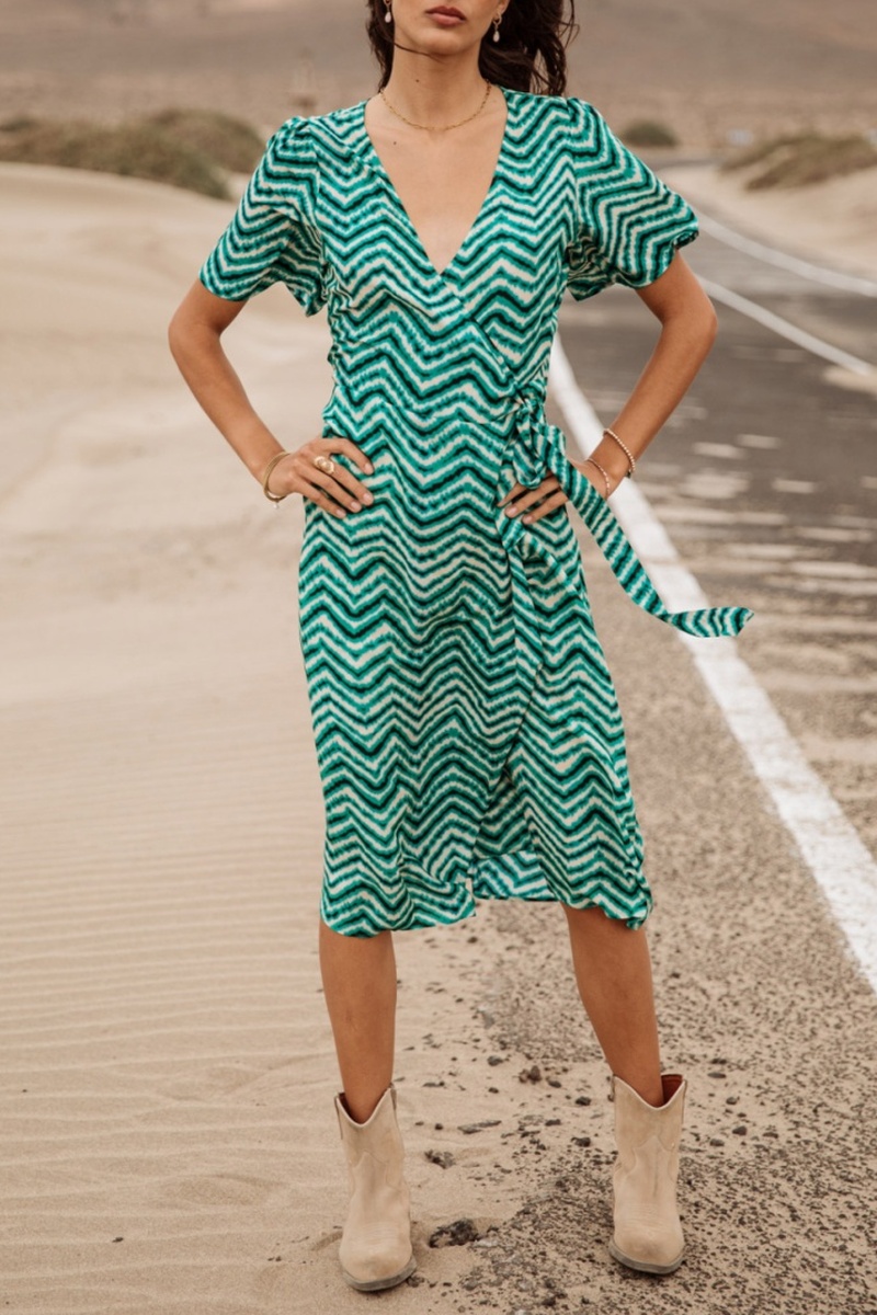 Matière fluide et douce imprimée dans un motif vague bicolore.
