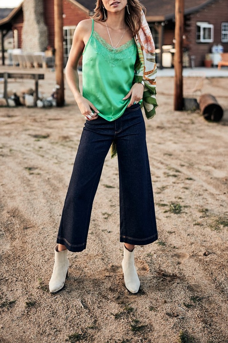 Jean wide legs 7/8 taille haute en coton biologique Nylia SDM - Vert