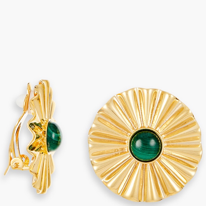 Boucles d'oreilles clip - Acier inoxydable doré & malachite verte
