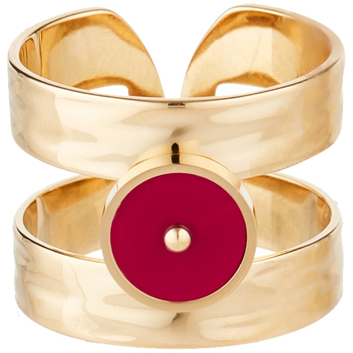 Bague - Acier inoxydable doré & pierre synthétique rouge