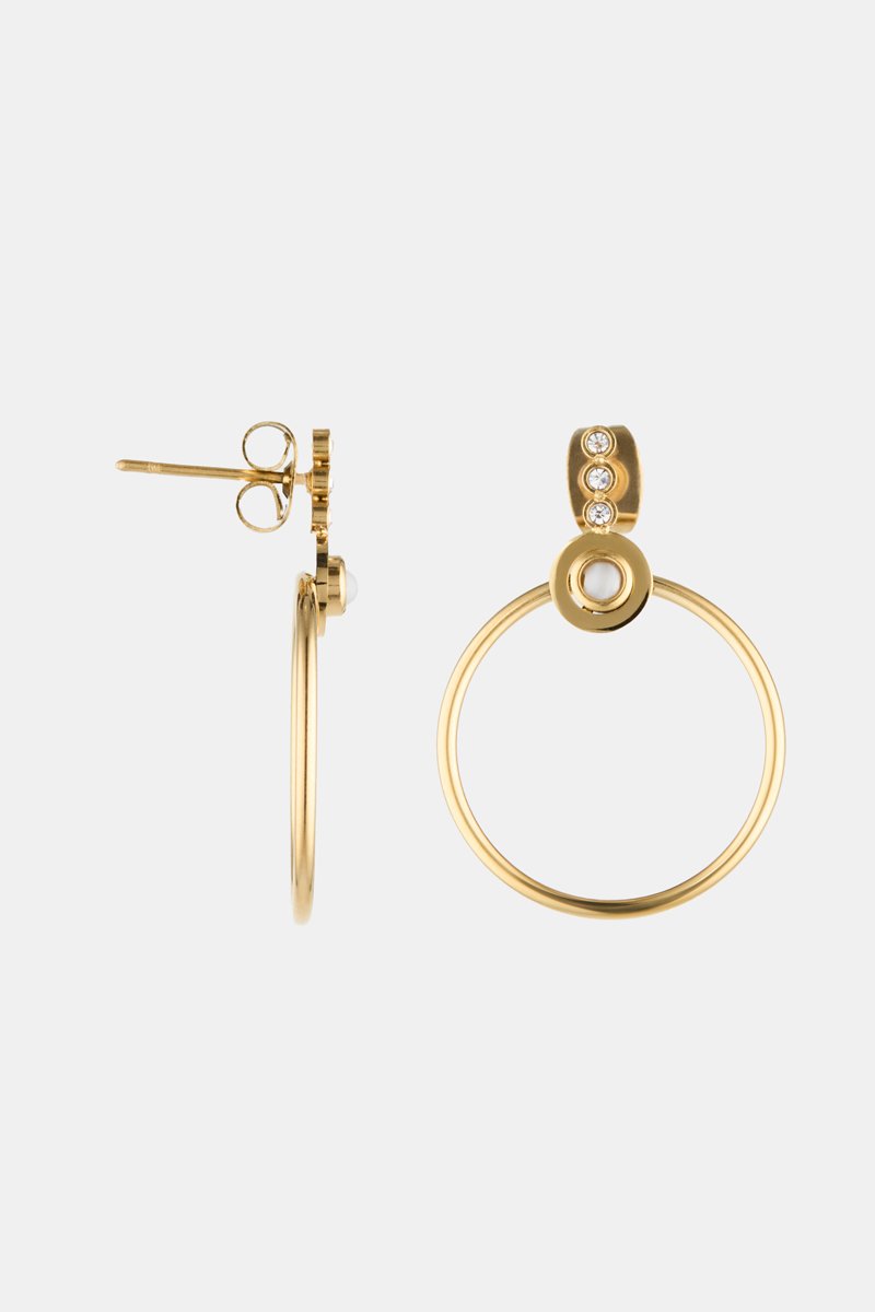 Boucles d’oreilles pendantes serties de la nacre et de zirconiums.