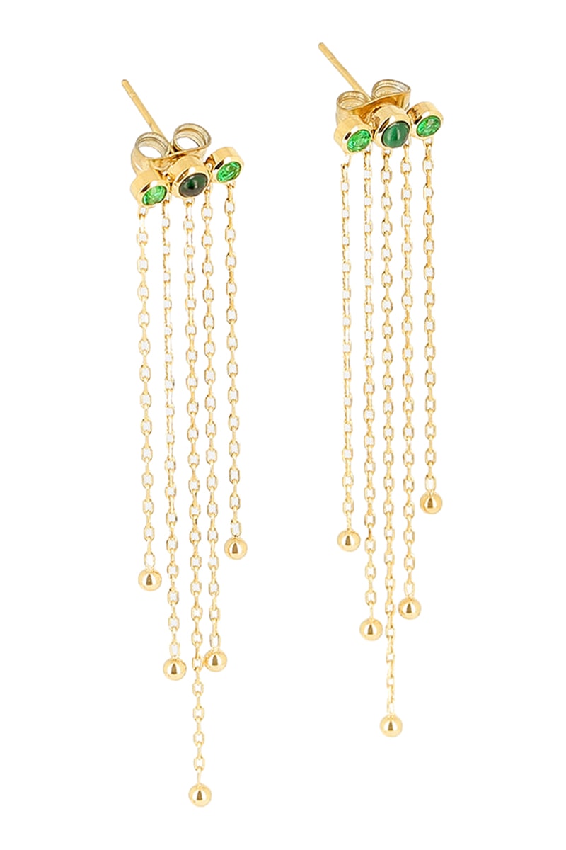 Boucles d’oreilles pendantes serties de 3 malachites.