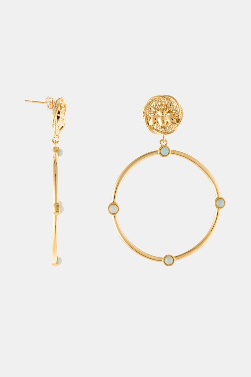 Boucles d'oreilles pendantes serties de 4 amazonites.
