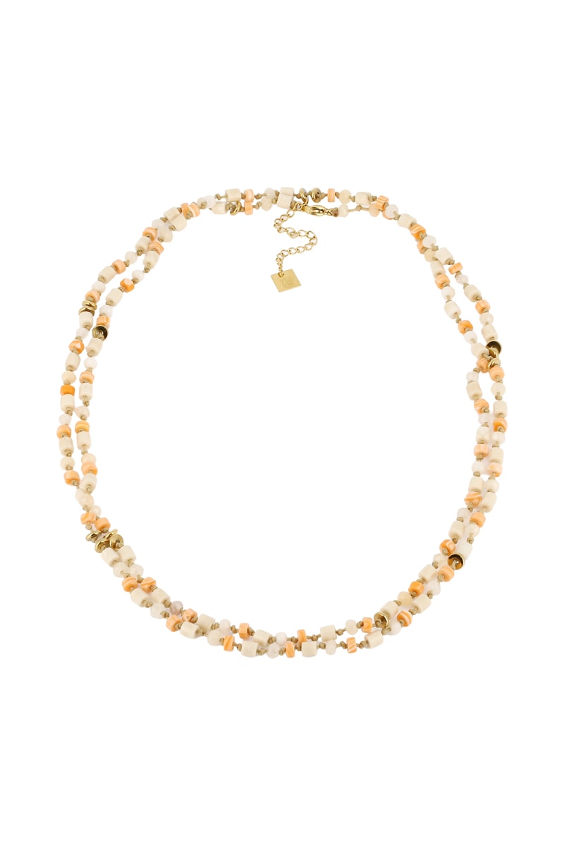 Collier multirangs serti de cristaux et de perles d’imitation.