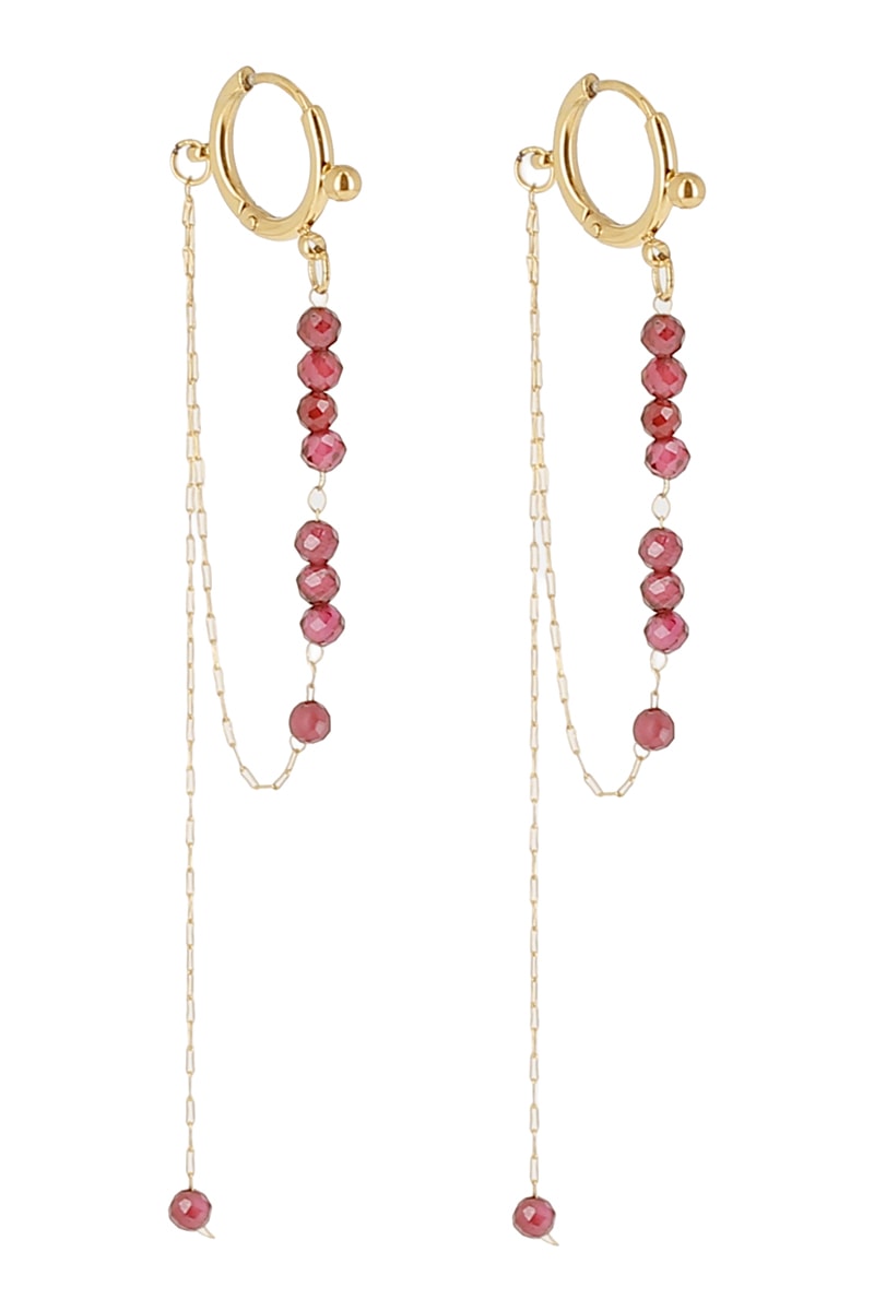 Boucles d’oreilles pendantes serties de 9 grenats.