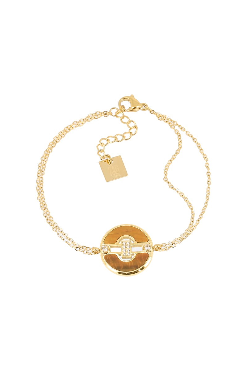 Bracelet serti de 2 œils-de-tigre et de 10 zirconiums.