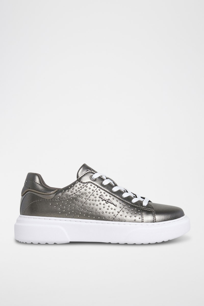 Baskets plateformes en cuir - Gris métallisé