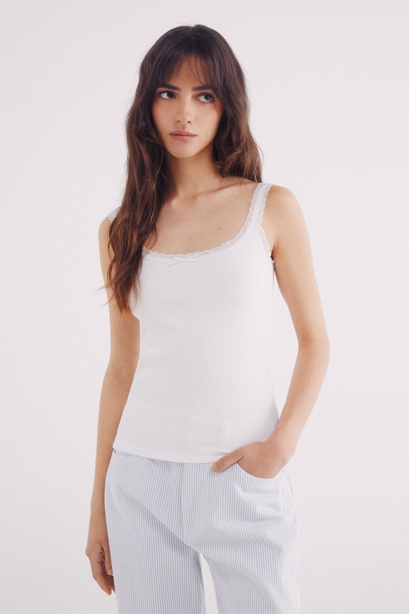 Empiècements en dentelle sur les bretelles, devant et au dos.
