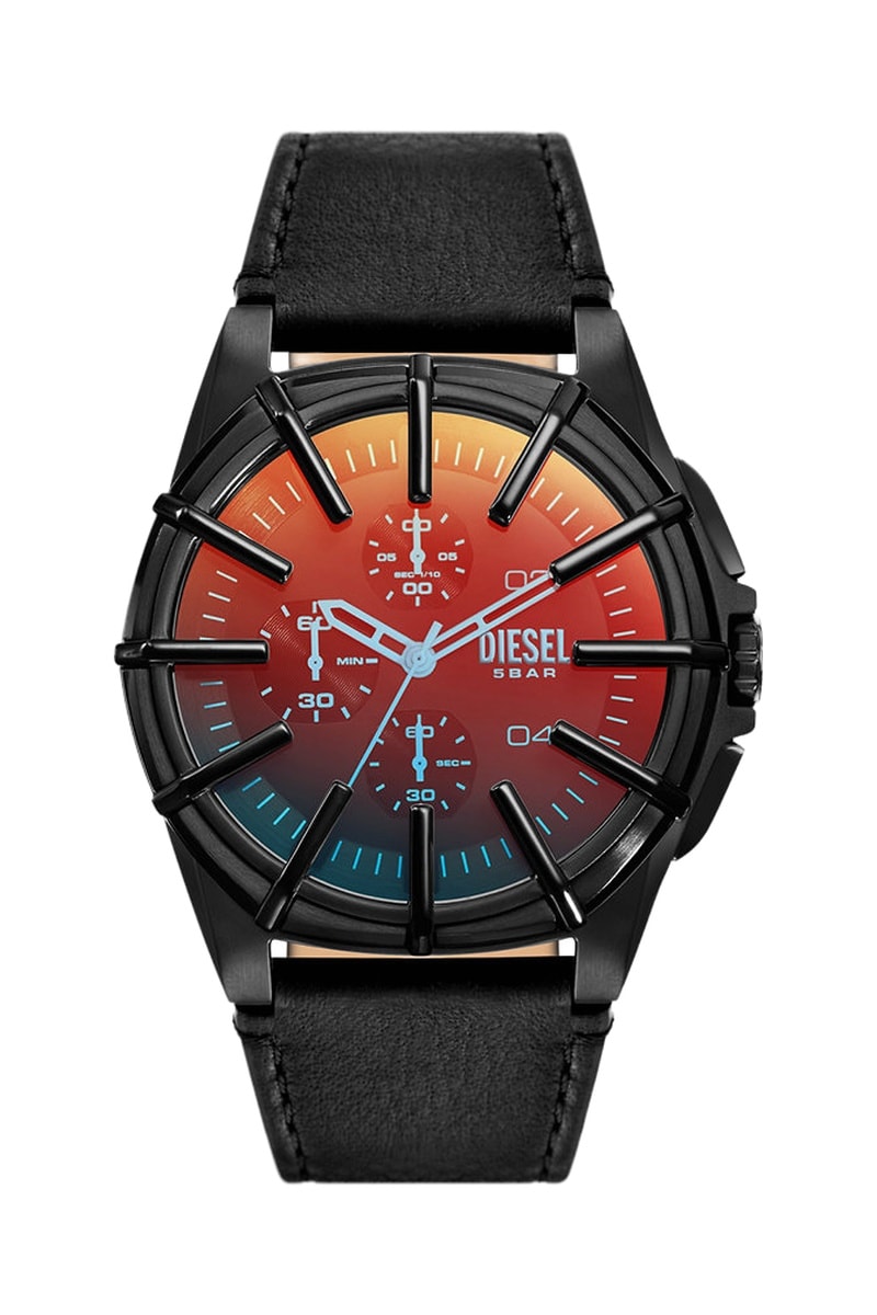 Montre à quartz en cuir - Chronographe - Noir et rouge