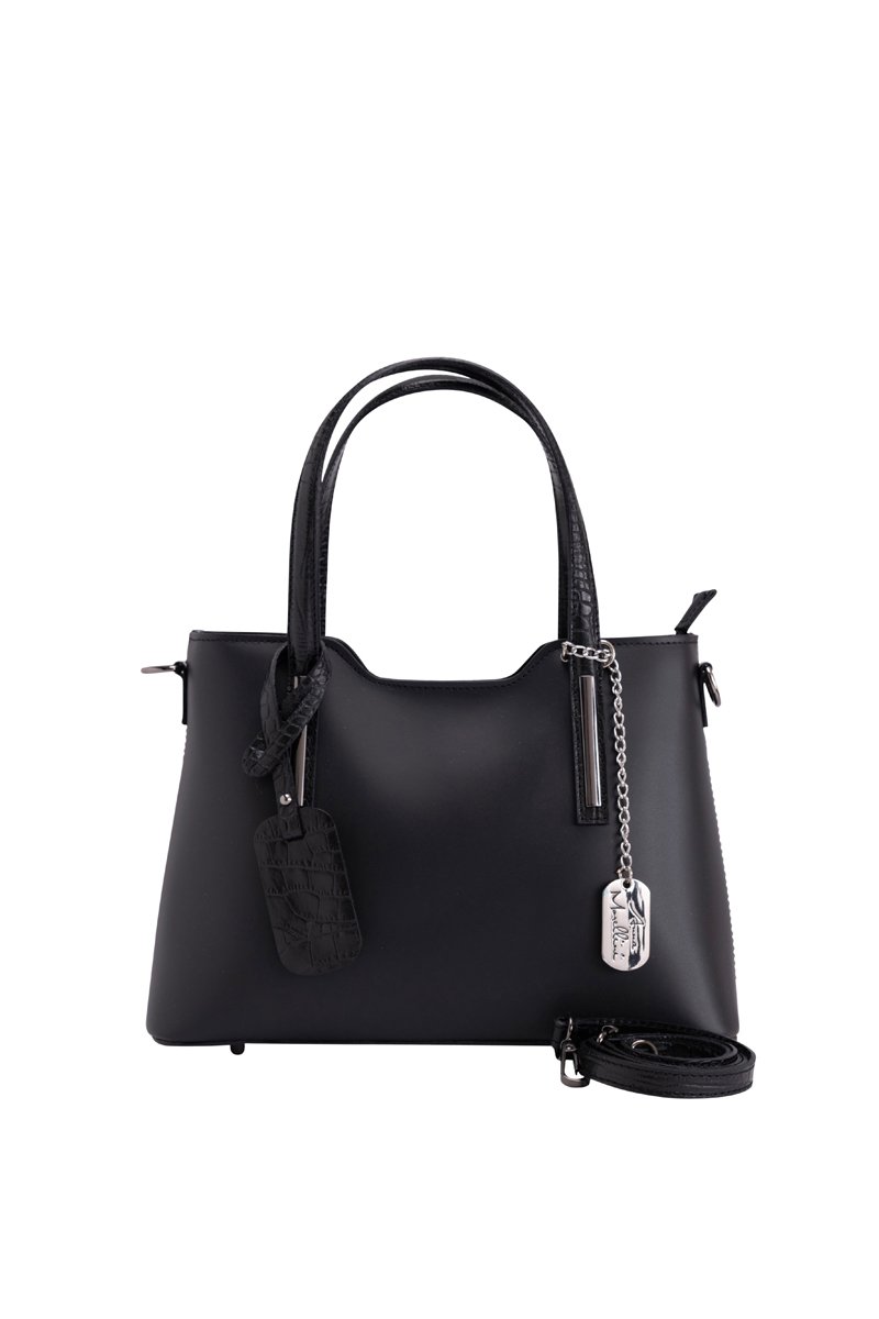 Patte amovible effet croco et chainette amovible avec empiècement en métal et logo devant.