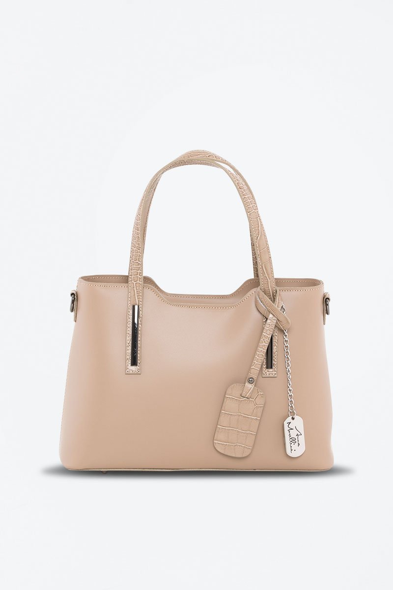 Patte amovible effet croco et chainette amovible avec empiècement en métal et logo devant.