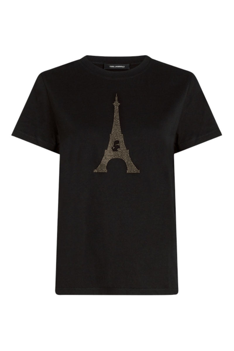 Motif tour Eiffel et strass devant.
